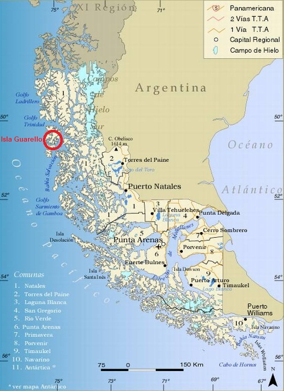 Esta faena minera se encuentra ubicada al sur del Golfo de Penas, en la isla Guarello la que forma parte del archipiélago Madre de Dios, en la provincia de Última Esperanza, región de Magallanes y de la Antártica Chilena (Figura N° 1)
